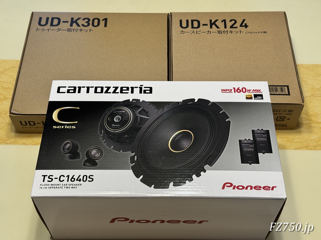 その後、純正スピーカーの音に満足ができなくなり、パイオニアのスピーカーとトゥイーターセット(TS-C1640S)を取付けました。よろしければこちらの記事もご覧ください。
