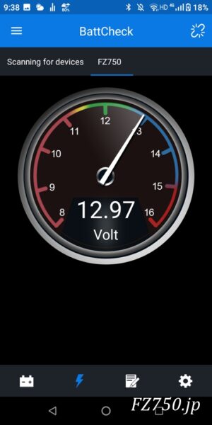 キジマ Batt Checkと同様に、シートカバーをかけてあっても測定可能です。近距離ならば屋内からでも測定可能なのは便利です。 - 現在の電圧だけでなく電圧の推移が見える