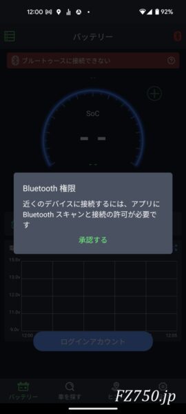 Bluetooth権限の画面では、「承認する」をクリックします。