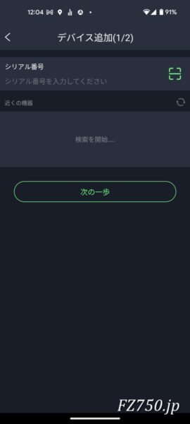 シリアル番号の右側の緑色アイコンをクリックして、BM200本体側面に貼ってあるシリアル番号のバーコートをスマホのカメラで読み込むと、シリアル番号の入力ができます。