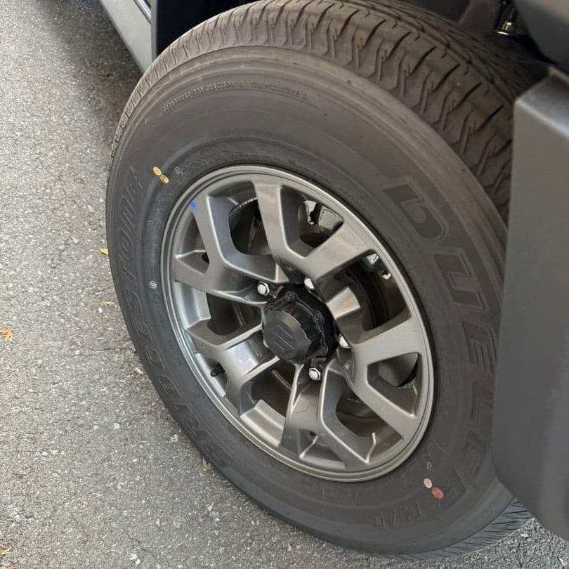 ジムニー ノマドも発売(発売日は2025年4月3日)から時間が経ったので、ジムニー ノマドの新車から取り外した新品タイヤ付の純正ホイールがメルカリでも沢山出回るようになって参りました。