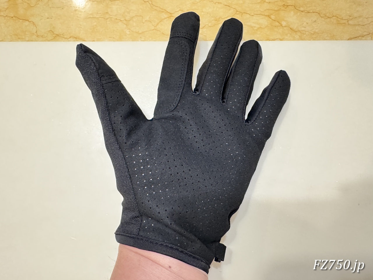 補強が一切なくなった点はやや気がかりですが、全面パンチメッシュにすることで通気性が向上しており、真夏の使用では手のひら側からの風通しも感じやすくなっています。また、グローブ全体として生地が薄いため、操作感のダイレクト感も増しています。
