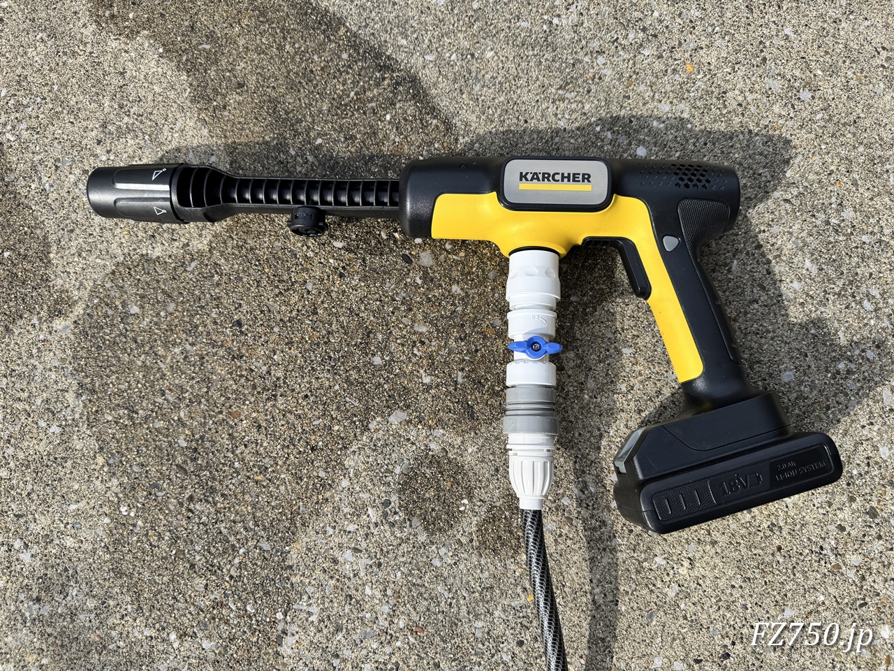 ケルヒャー OC 5 Handy にコック付きニップル(G080CG)と散水ホースを接続