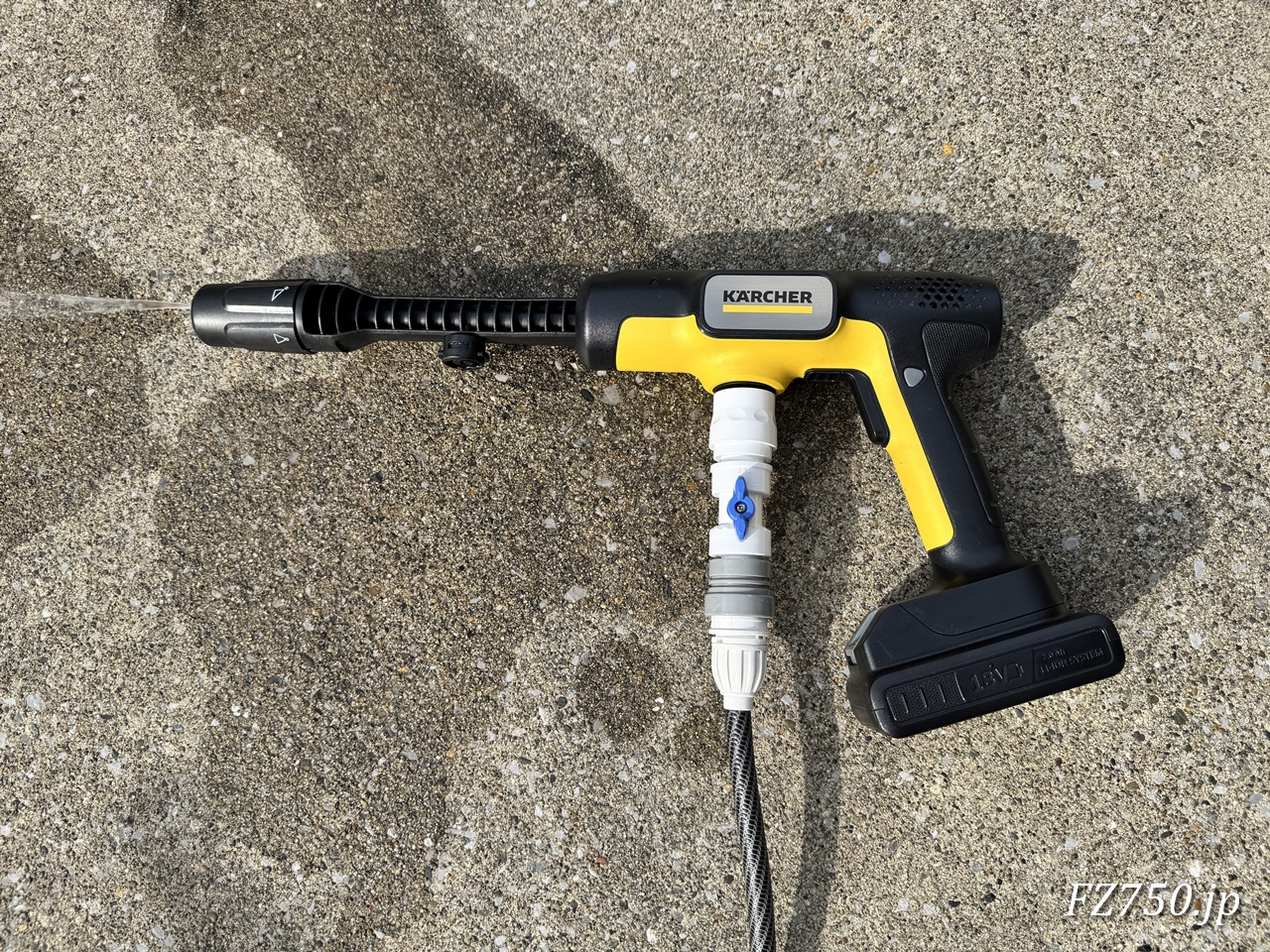コック付きニップル(G080CG)をOFFにして、洗車の途中でケルヒャー OC 5 Handy の水を止めたところ