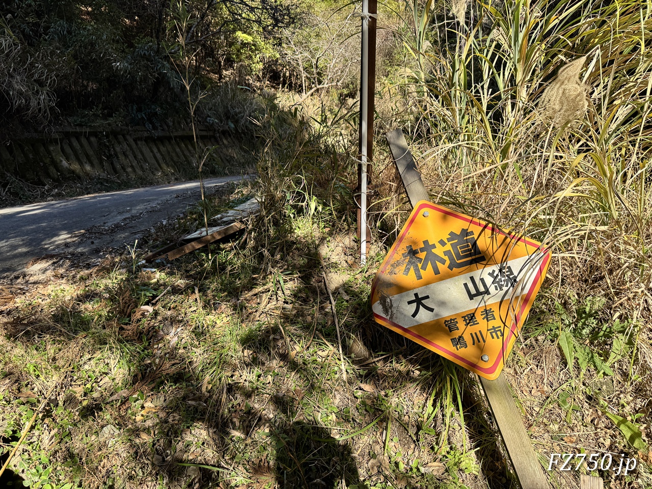 林道大山線の入口で確認したところ、林道大山線の標識は倒れていました。