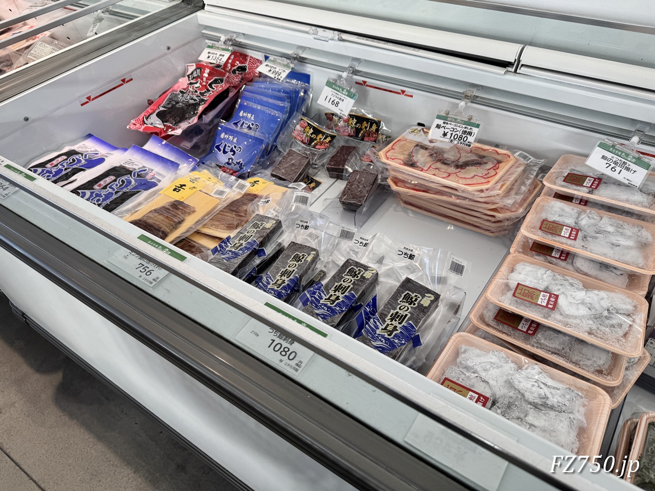 鋸南町のおとなりにある南房総市では、6月下旬から8月中旬頃まで、ツチクジラを中心としたクジラ漁をおこなっています。そのため、道の駅でもクジラを扱っております。