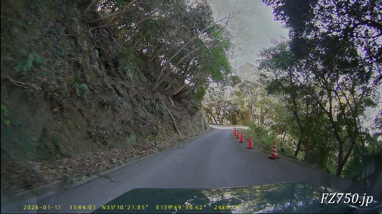 路肩の弱い箇所には、パイロンが置いてあったので注意して通過しました。